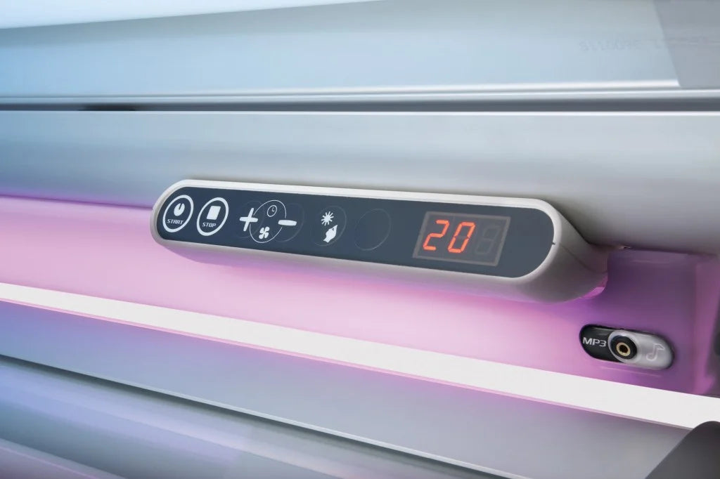 La Luxura X3 est équipée de 32 lampes haute pression Sunfit. Spécialement positionnées pour cibler uniformément toutes les zones du corps, y compris les zones parfois négligées dans d'autres cabines (épaules, hanches, jambes).